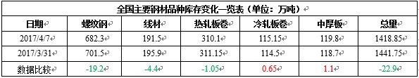 纵观全国市场,本期全国35个主要市场螺纹钢库存量为682.3万吨,减少19.2万吨,降幅为2.74%;线材库存量为191.5万吨,减少4.4万吨,降幅为2.25%。而从全国线材、螺纹钢、热轧板卷、冷轧板卷、中厚板五大品种库存总量来看,本期全国综合库存总量为1418.85万吨,较前一周减少22.9万吨,降幅为1.59%。总体来看,本周全国钢材市场库存连续第七周出现下降,目前的库存水平较去年同期增加34.37%。目前国内建筑钢材需求尚可,但板材需求持续低迷,使得国内钢材市场库存在旺季消化速度不及预期,市场供应压力有所加大。